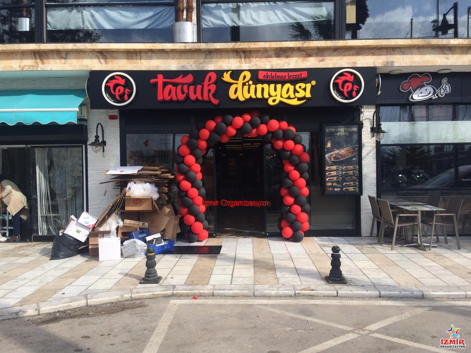 Bodrum Tavuk Dünyası açılış organizasyonu için organizasyondan bir gün önce ekipmanlarımızı hazırlayarak son model araçlarımıza yükledik. Organizasyon günü gelip çattığında ise gün daha doğmadan erken saatlerde hazırlıklarımıza başlamak üzere ekibimizle birlikte yola koyulduk. Organizasyon alanına ulaştığımız vakit kaybetmeden balon süslemelerimiz için işe başladık. Kırmızı ve siyah renklerde temin ettiğimiz balonları eşit boyda şişirerek önce ikili, sonraysa dörtlü olarak birleştirdik. Organizasyon alanında yer vereceğimiz zincir balon süslemeleri ilk olarak tamamlandı ve boydan boya dış mekanda yerini aldı. Hemen ardındansa yine ikili ve sonrasındaysa dörtlü olarak birleştirdiğimiz balonlar renklerine göre rot dediğimiz ipe dizildi. Kapının girişinde sabitlediğimiz kapı takı balonda tamamlandığında organizasyonda görevli ekibimiz hazırlıklarını tamamlamak üzere aramızdan ayrıldı.