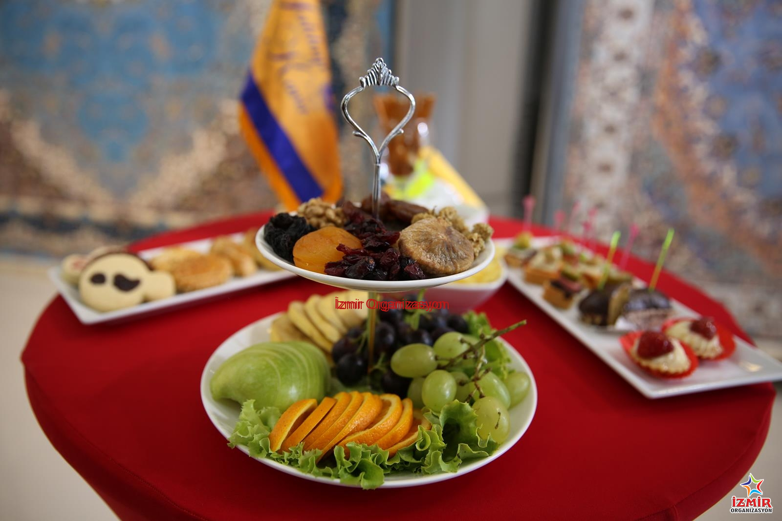 Organizasyonun türüne ve tercihlerinize göre çeşitlilik gösterebilecek coffee break ikramlar menüsü bütçenize ve isteklerinize göre hazırlanabilmektedir. Organizasyon günü gelip çattığında ise ikramlıklar, profesyonel temiz ve şık tek tip kostümlü servis elemanlarımız ve garsonlarımız tarafından servis edilmektedir. Titizlikle ve hijyen kurallarına uygun bir şekilde, özenle hazırlanan tabaklar organizasyon başlamadan önce hazırlanır. İkramların menüsünü aşağıda görebilir ve İzmir Organizasyon firmamızdan davetli sayınıza göre talep edebilirsiniz.