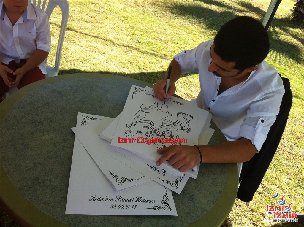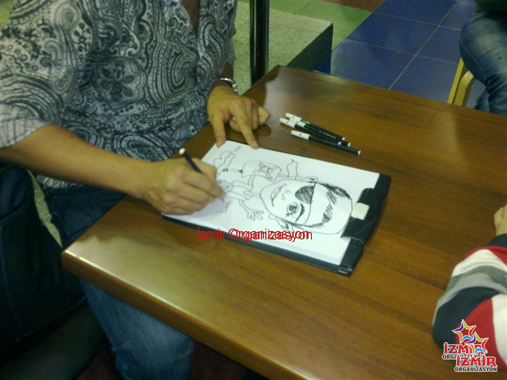 Karikatürist ve karikatür çizimi İzmir Organizasyon firmamızın profesyonel ekibi tarafından hazırlanmaktadır. Nasrettin Hoca misali insanları hem güldüren hem de düşündüren çizimlerdir karikatür çizimleri. İzmir Organizasyonun yetenekli ve deneyimli karikatüristleri ile açılış organizasyonu, sünnet organizasyonu, doğum günü organizasyonu, şenlik organizasyonu, ramazan etkinlikleri gibi farklı organizasyonların vazgeçilmezi haline gelmiştir. Kişinin kendine farklı bir pencereden bakmasına olanak sağlayan karikatür çizimleri aynı zamanda organizasyon bitiminde yanınızda kalacak en anlamlı hatıralar olacaktır. Her yaştan insana hitap edebilen karikatür çizimleri ile organizasyonun türüne göre farklı konseptler belirleyebilirsiniz. Örneğin doğum günü partinizin davetiyesini karikatür ve kaligrafi kullanarak ilgi çekici hale getirebiliriz. Ya da açılış organizasyonuna gelen kişilerin, sizin logonuzun basılı olduğu özel kağıtlara karikatürlerini çizerek hem eskimeyen bir hatıra kalırken hem de reklamınızı yapabiliriz. Açılış organizasyonlarında ise gelen konukların hatta yoldan geçen insanların bile dikkatini çekerek, açılış organizasyonunu amacına uygun olarak daha da hareketli hale getirebilirsiniz. Karikatürist kalem ve kağıdını alarak organizasyonun yapılacağı alanda masasına oturarak ya da özel şövalesinin başına geçerek, her yaştan insana hitap edebilmektedir. İnsanları göze hoş görünen mizahi bir şekilde çizerek hem çevredekilerin dikkatini çeker hem de organizasyona gelen kişiler için hoş bir hatıra olarak çizim hediye edilir.