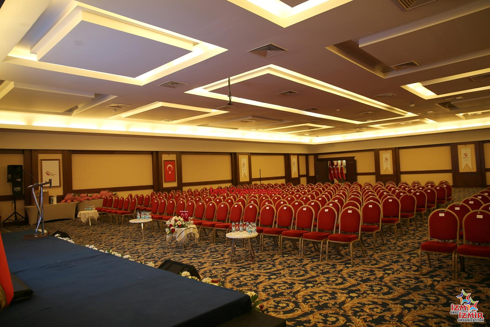 Manisa Valiliği Devlet Övünç Madalyası Tevcih Töreni Organizasyonu 26 Ocak’ta Manisa Anemon Hotel de gerçekleşti. Organizasyon, Manisa Aile ve Sosyal Politikalar İl Müdürlüğü ve Manisa Valiliği tarafınca İzmir Organizasyon ekibine ulaşarak başladı. Manisa Aile ve Sosyal Politikalar Bakanlığı İl Müdürlüğü ve Manisa Valiliği ile yapılan görüşmeler ile Manisa Valiliği Devlet Övünç Madalyası Tevcih Töreni Organizasyonu ve etkinliğin de tüm ihtiyaçlar beraber saptandı. Daha önce birçok organizasyon firması ile çalıştıklarını ancak olumsuz sonuçlar ile karşılaştıklarını belirten Manisa Aile ve Sosyal Politikalar Bakanlığı, İzmir Organizasyon ekibinin referanslarını incelediklerini ve bizi tercih ettiklerini belirtti. Manisa Valiliği Devlet Övünç Madalyası Tevcih Töreni Organizasyonu için ses sistemi kiralama, led ekran sistemi, sahne düzeni, bayrak süsleme, çiçek süsleme, protokol sehpası gibi ihtiyaçlar belirlendi ve İzmir Organizasyon firmamızdan gerekli ürünler organizasyon için temin edildi. Led Ekran Sisteminde hangi sunumların yapılacağı ve nelere yer verileceği yine Manisa Aile ve Sosyal Politikalar Bakanlığı İl Müdürlüğü ve Manisa Valiliği ile yapılan görüşmeler sonucunda belirlendi. Manisa Valiliği Devlet Övünç Madalyası Tevcih Töreni Organizasyonu gerçekleşmeden önce salonda hazırlıklar başladı. Protokol katılımları başlamadan salonda sabahın erken saatlerinden itibaren profesyonel ekibimiz hazırlıklarını tüm hızı ile sürdürdü.