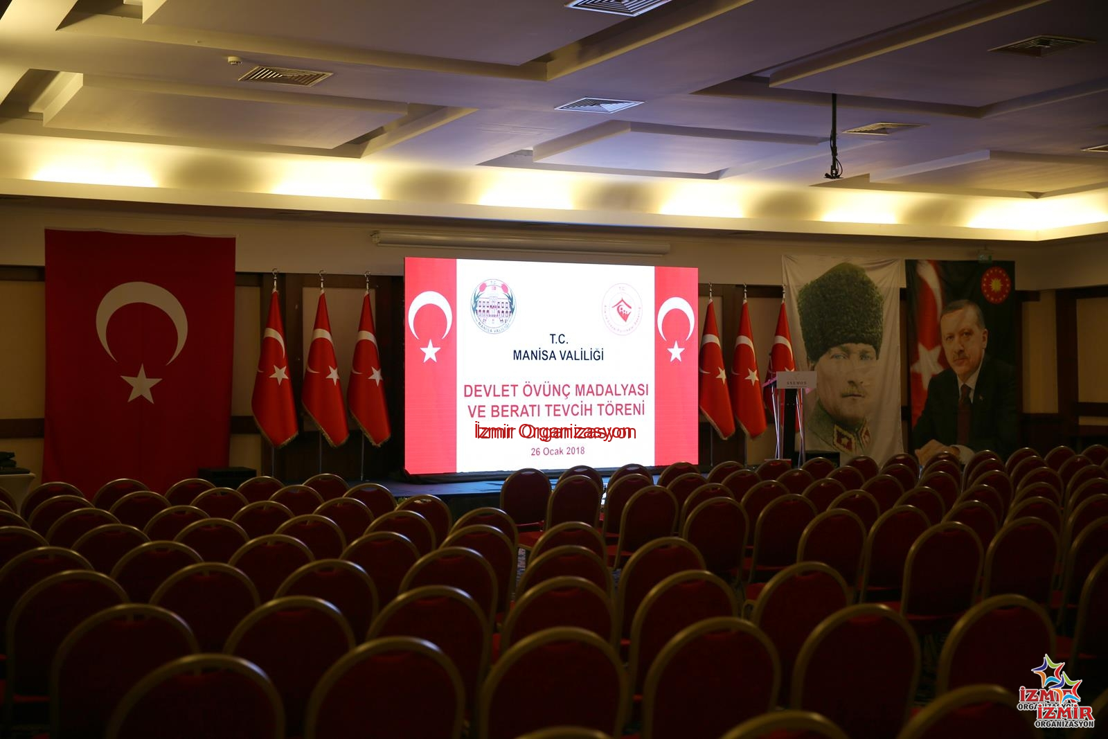 - Led Ekran Kiralama Sistemi; Manisa Valiliği Devlet Övünç Madalyası Tevcih Töreni Organizasyonu için eksikler saptanırken, katılım sağlayacak konuklara yapılacak sunumda led ekran sistemine ihtiyaç olduğu belirlendi. Organizasyona katılım sağlayacak davetli sayısına ve tören organizasyonunun gerçekleşeceği alanın büyüklüğüne göre led ekran kiralama İzmir Organizasyon tarafından temin edildi.