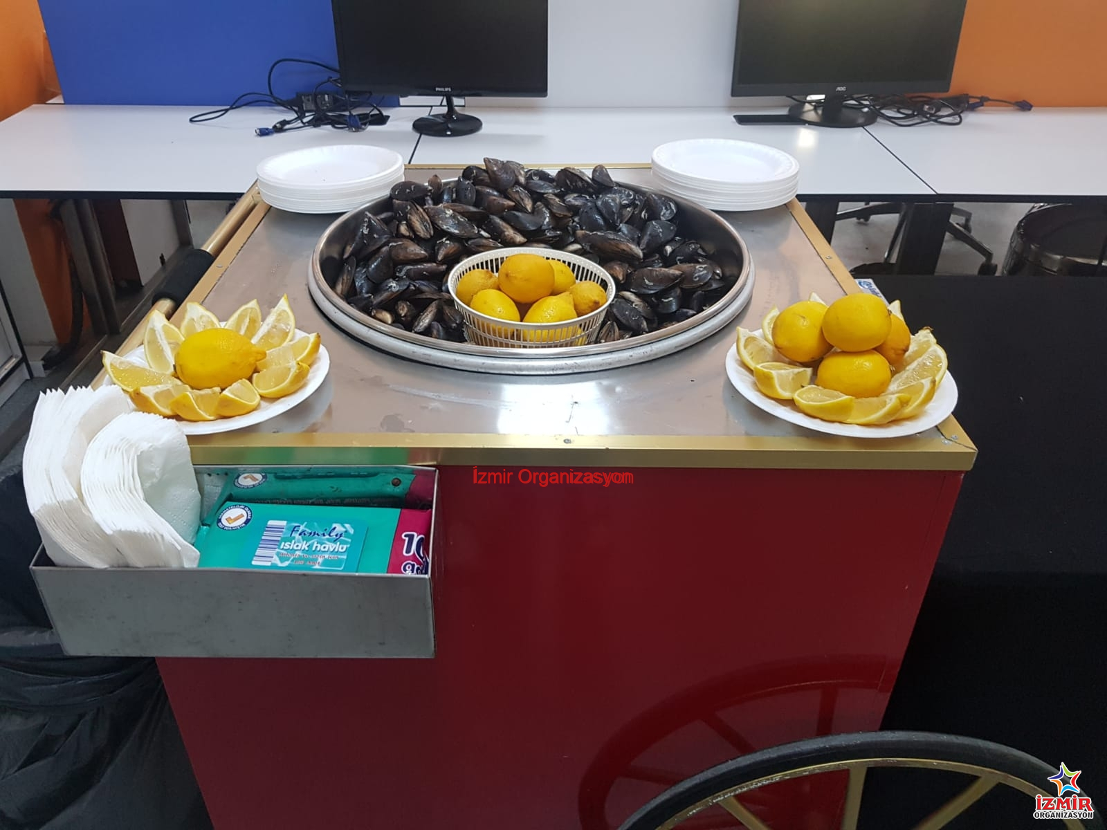 Dolma midyeler usulüne uygun olarak en güzel ayaküstü yenendir. Bu nedenle midye arabası bu konsepte uygun olarak dizayn edilir. Midye arabasına özenle dizilen midye dolmalar limon dilimleriyle ikram edilir. Yanında peçete ve ıslak mendili mutlaka verilmelidir. Aşağıda midyeci ve midye standı fotoğraflarımızı inceleyebilir, ayrıntılı bilgi almak için İzmir Organizasyon şirketimize ulaşabilirsiniz.