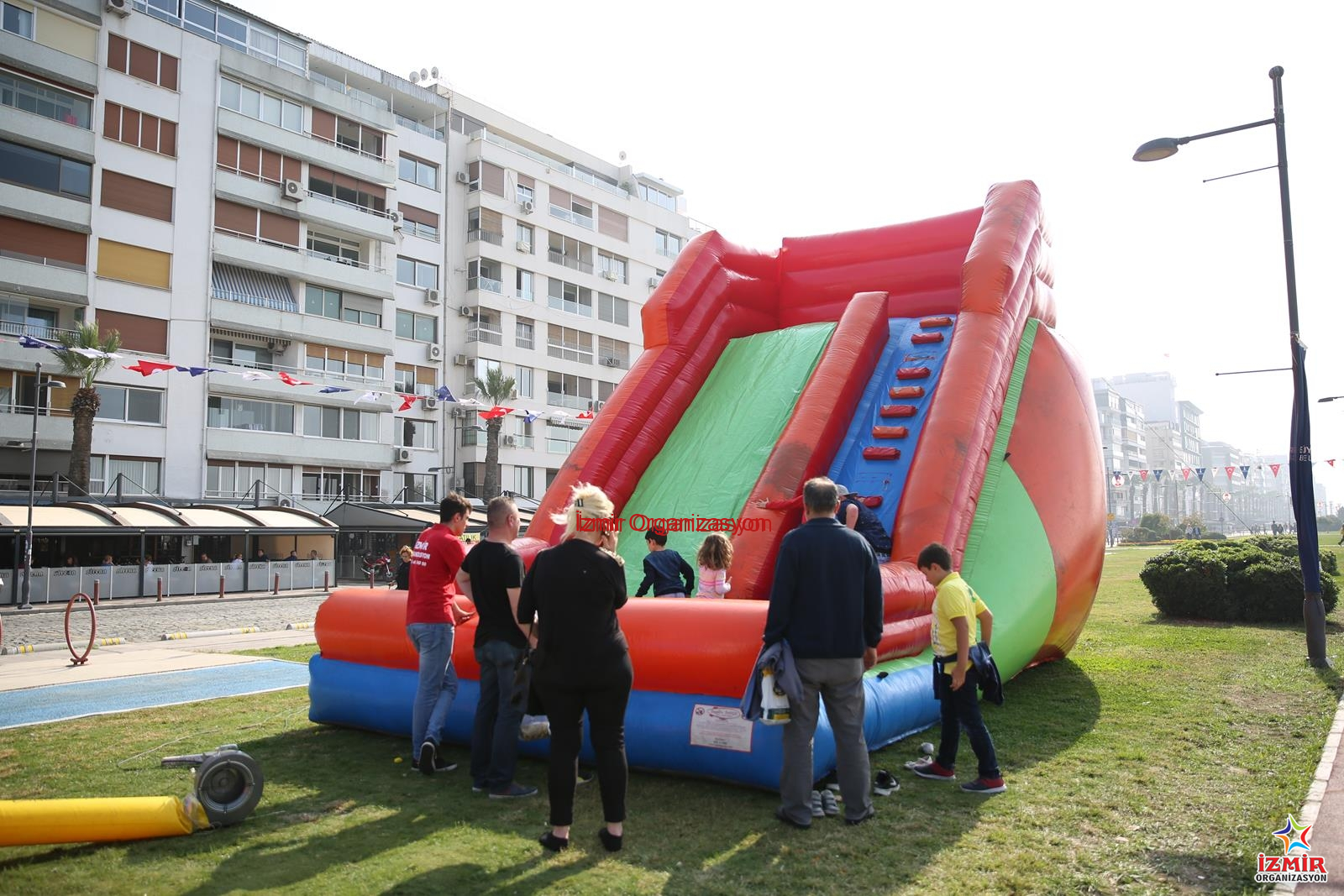 Renkli kaydırak şişme oyun parkuru göz alıcı renkleri ile organizasyonlarınıza katılan misafirlerinizin gözlerine hitap eder. Organizasyonlarınızda çocukların eğlenceli dakikalar geçirmesi için ideal şişme parkurlardan birisidir. Renkli kaydırak oyun parkuru ile eğlenceli ve keyifli anlar geçirebilir ayrıca organizasyonlarınızı farklı kılabilirsiniz. Renkli şişme kaydırak tam bir oyun parkı atmosferi yaratır. Tüm oyun parkurlarımız İzmir Organizasyon kalitesi ve güvencesi ile üretilmiştir. Ofisimizin hemen yanı başında bulunan depomuzdan hızlı bir şekilde temini sağlanır. Organizasyonunuzun yapılacağı alana profesyonel ekibimiz tarafından kolayca kurulumu sağlanır.İzmir Organizasyon şişme oyun parkurları hizmetinin yanı sıra farklı hizmetleri de sizlere sunmaya devam ediyor. Organizasyonlarınız da eğlenceyi yükseltmek için palyaço, çizgi film maskotları, kostümlü karakterler, yüz boyama, sihirbaz ve illüzyon gösterileri gibi animasyon hizmetlerimizden faydalanabilirsiniz. Ayrıca organizasyon ve etkinlikleriniz için gerekli olan tüm malzeme ve ekipmanları temin etmek için hazırız.