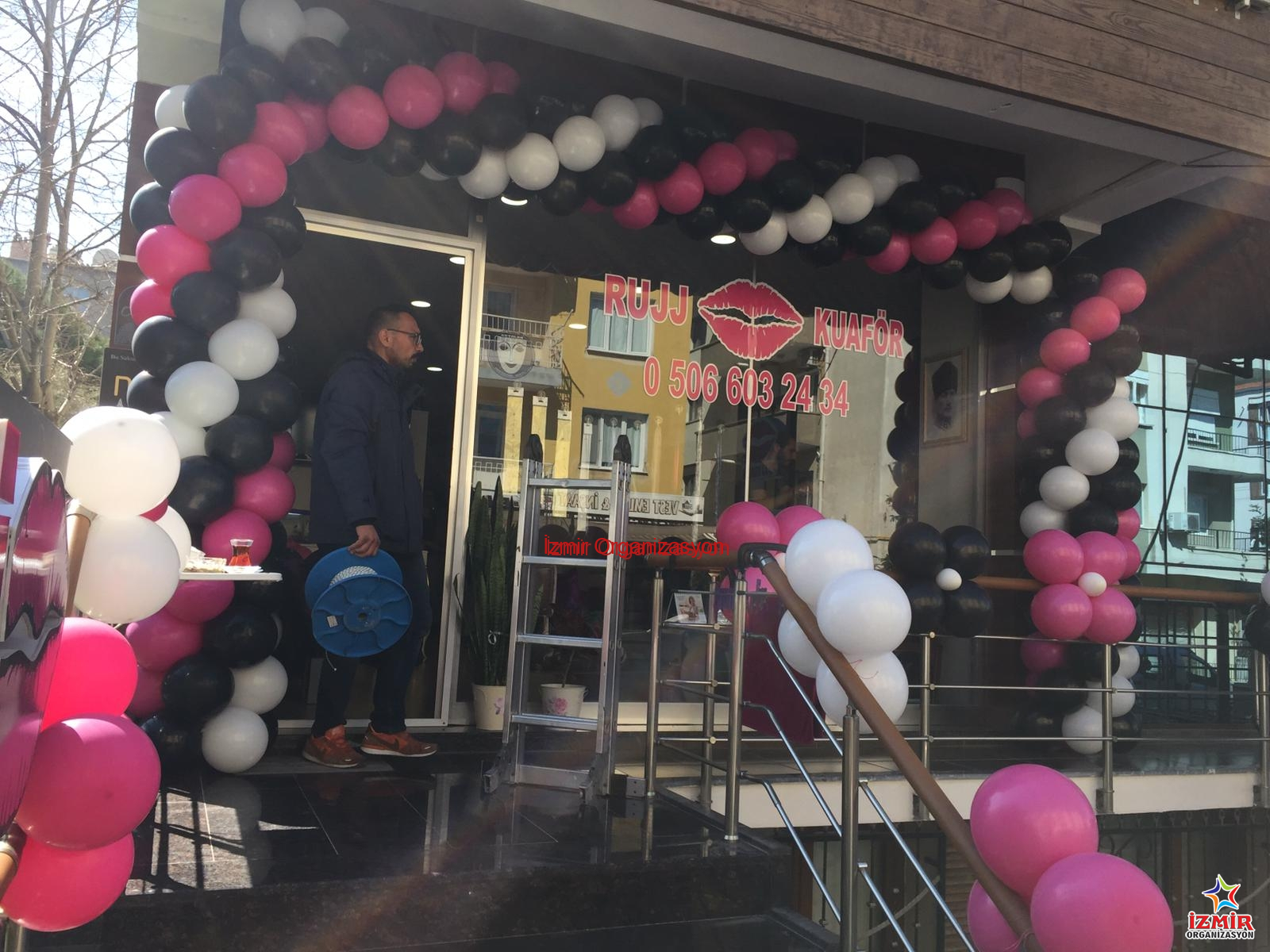 Daha öncede çalışmalarını yürüttüğümüz Rujj Kuaför firma yetkilisi Selahattin Bey, İzmir Organizasyon şirketimize ulaşarak müşterilerine kendilerini özel hissetmelerini sağlayacak bir süsleme talep etti bizlerden. İzmir Organizasyon şirketi olarak neler yapabileceğimiz üzerine kısa bir fikir alışverişinde bulunduk. Balon süsleme, bayrak süsleme, uçan balon süsleme gibi farklı süslemelerden bahsettik. Balon süslemede karar kıldıktan sonra İzmir Organizasyon ekibi olarak organizasyon tarihini beklemeye başladık.