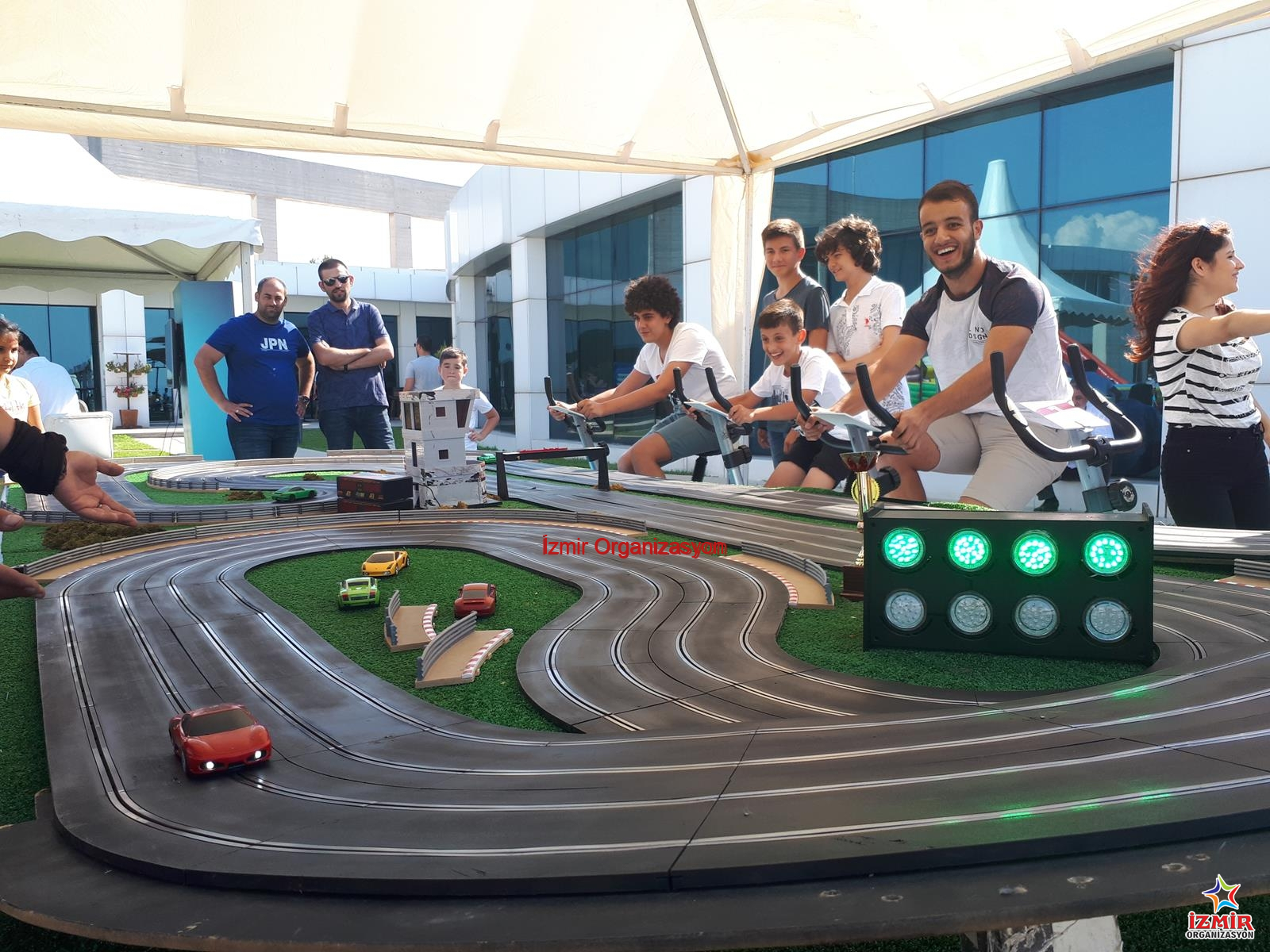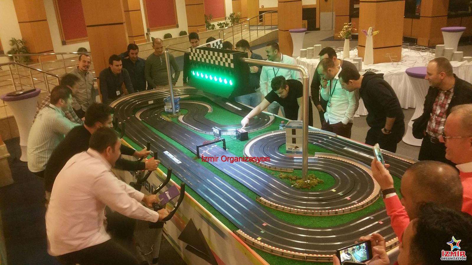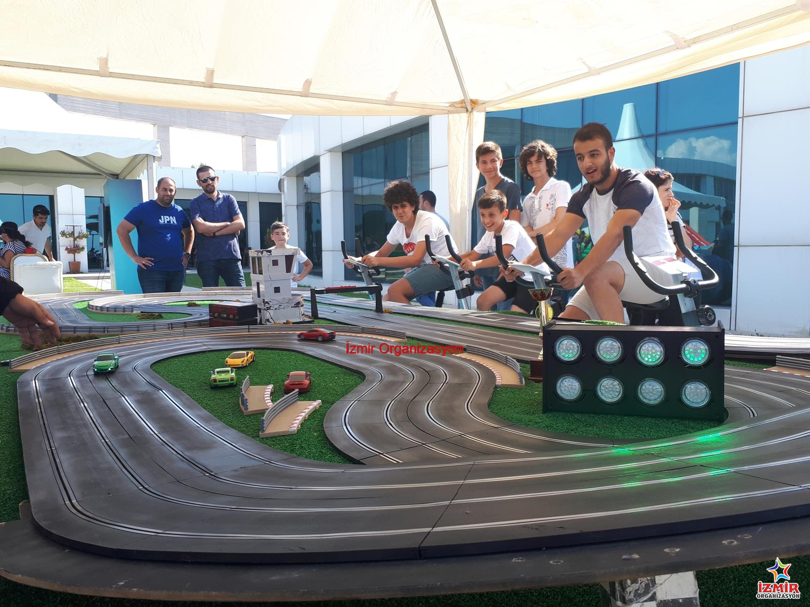 Slot car bisiklet, istenilen uzunluklarda İzmir Organizasyon şirketimiz tarafından hazırlanmaktadır. Yarış pistinin nakliyesi ekibimiz tarafından gerçekleştirilmekte ve kurulumunu da yine İzmir Organizasyon şirketimizin profesyonel personeli tamamlamaktadır. Özel ekipmanlarla hazırlanan pistin üzerindeki son model araçlar, bisiklet pedalından enerji alarak hareket etmektedir. Böyle yarışmacılar kıyasıya rekabet halindeyken eğlenceli anlar yaşar.